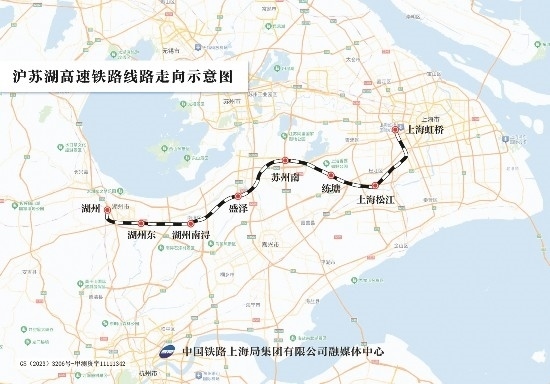 滬蘇湖高鐵是上海、蘇州、湖州基礎(chǔ)設(shè)施互聯(lián)互通的重大項(xiàng)目,也是長三角高鐵聯(lián)網(wǎng)、補(bǔ)網(wǎng)、強(qiáng)鏈的重點(diǎn)項(xiàng)目。滬蘇湖高鐵由上海虹橋站引出,途經(jīng)蘇州市,終至湖州市湖州站,線路全長約163公里,設(shè)計(jì)時(shí)速350公里,設(shè)上海虹橋、上海松江、練塘、蘇州南、盛澤、湖州南潯、湖州東、湖州站等8座車站。