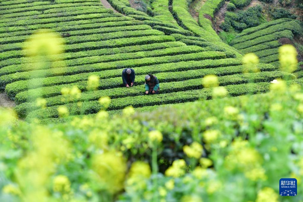 4月4日,茶農(nóng)在湖北省宜昌市秭歸縣茅坪鎮(zhèn)長嶺村一家茶園采茶。