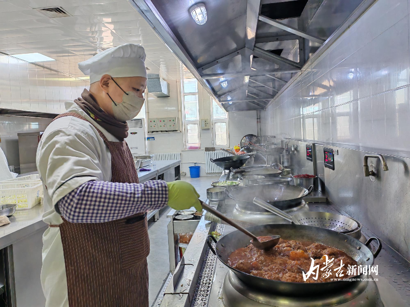 春節(jié)期間的桑根達(dá)來(lái)行車(chē)公寓后廚,廚師孫磊正在灶臺(tái)前忙碌著。面前一口碩大的鐵鍋內(nèi),醬色的四喜丸子在濃郁的湯汁里,散發(fā)著撲鼻的香氣。廚房升騰著陣陣煙火氣,蒸汽在玻璃窗上凝成水珠。灶臺(tái)上好幾口鐵鍋同時(shí)翻騰著——紅燒肉咕嘟冒泡,油燜大蝦亮紅誘人,燉牛肉飄來(lái)陣陣香氣,圓嘟嘟的餃子也即將下鍋。千家萬(wàn)戶團(tuán)圓之時(shí),這個(gè)草原深處的特殊驛站里,工作人員正用精心制作的特色美食,為堅(jiān)守崗位的鐵路人打造出別具溫情的團(tuán)圓飯。