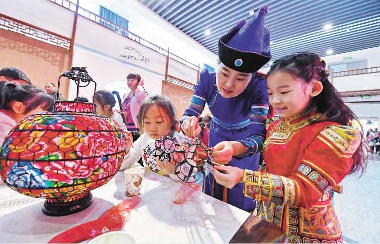 1月15日,小朋友們在非遺年貨展互動體驗(yàn)區(qū)學(xué)習(xí)制作燈籠。當(dāng)日,“非遺過大年文化進(jìn)萬家——2019年全區(qū)非物質(zhì)文化遺產(chǎn)年貨展”在內(nèi)蒙古展覽館舉辦,活動日期為1月15日至24日。本次展覽精選了與傳統(tǒng)年俗有關(guān)的近100個(gè)非遺項(xiàng)目進(jìn)行集中展示,旨在推動非物質(zhì)文化遺產(chǎn)創(chuàng)造性轉(zhuǎn)化、創(chuàng)新性發(fā)展,促進(jìn)文化脫貧攻堅(jiān),傳承和弘揚(yáng)民族優(yōu)秀傳統(tǒng)文化,將非遺融入傳統(tǒng)新春佳節(jié),讓記憶里的濃濃年味在非遺傳統(tǒng)中鮮活起來。(內(nèi)蒙古日報(bào)社融媒體記者 王磊攝)