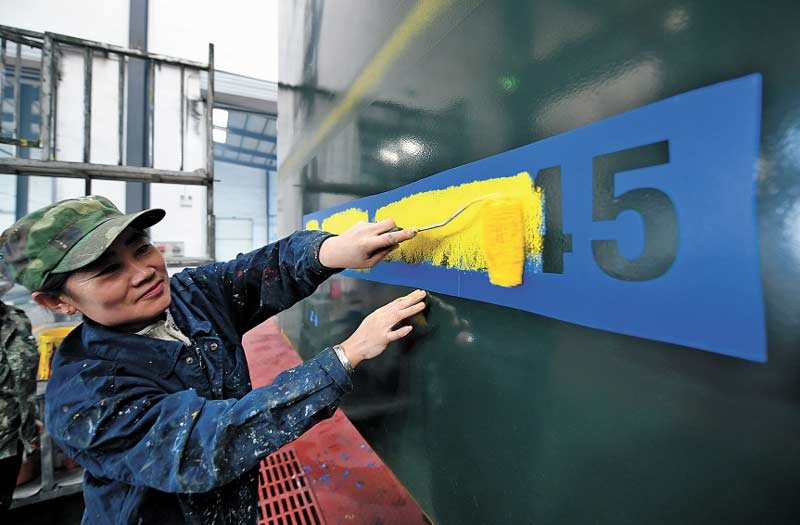 對(duì)修竣列車噴打標(biāo)記