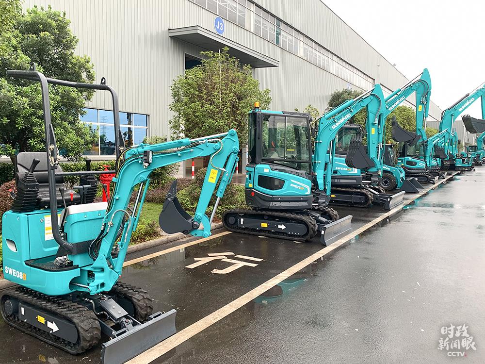 △這是不同型號的微型挖掘機(jī),特點(diǎn)是動(dòng)臂可偏轉(zhuǎn),底盤可伸縮,適合城市改造、農(nóng)田水利等小規(guī)模項(xiàng)目。(總臺央視記者章猛拍攝)