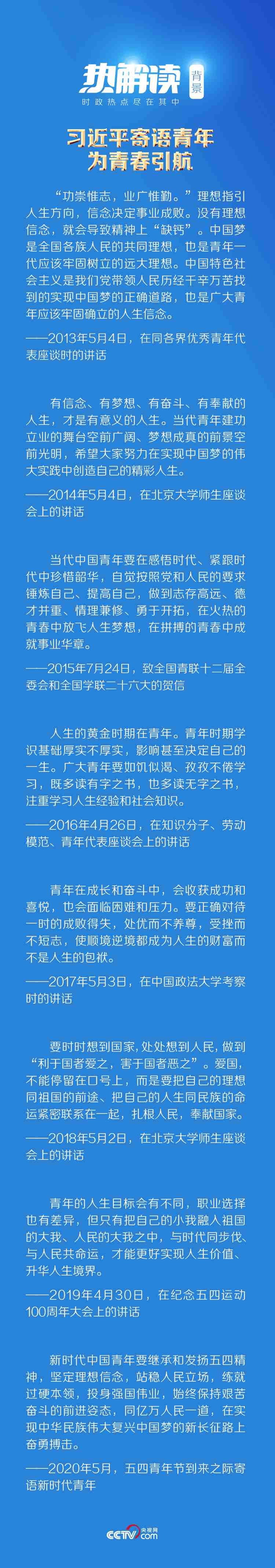 正如總書記所言:“前進的道路從不會一帆風順,實現中華民族偉大復興的中國夢需要一代一代青年矢志奮斗。同學們生逢其時、肩負重任?!薄?中央廣播電視總臺央視網)