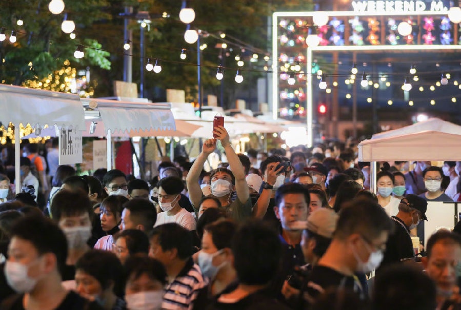2020年6月6日,市民在上海市黃浦區(qū)的一處夜市消費(fèi)休閑。新華社記者丁汀攝