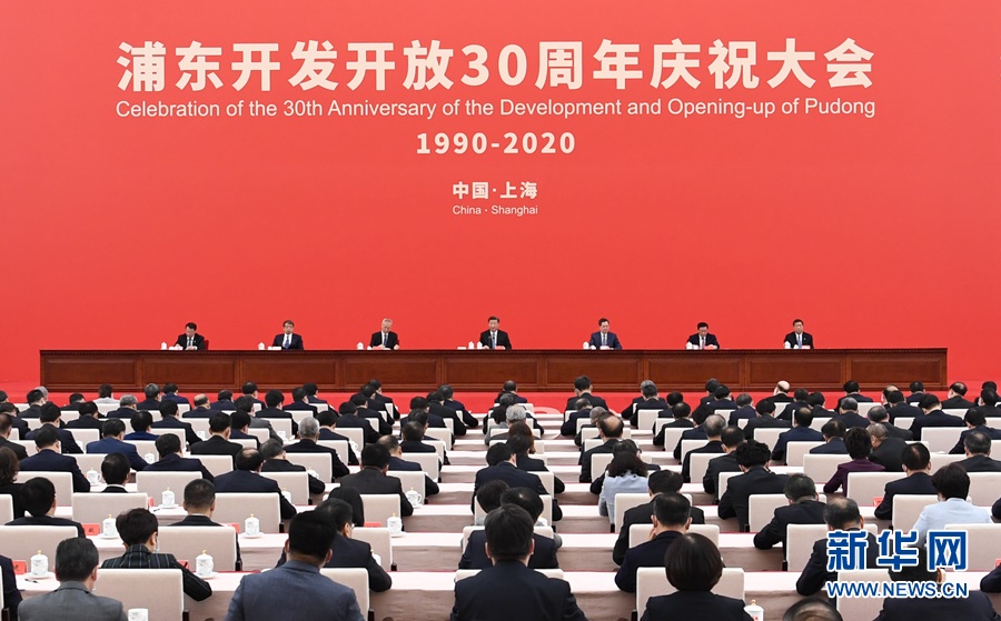 11月12日,浦東開(kāi)發(fā)開(kāi)放30周年慶祝大會(huì)在上海市舉行。中共中央總書(shū)記、國(guó)家主席、中央軍委主席習(xí)近平在會(huì)上發(fā)表重要講話(huà)。新華社記者申宏攝