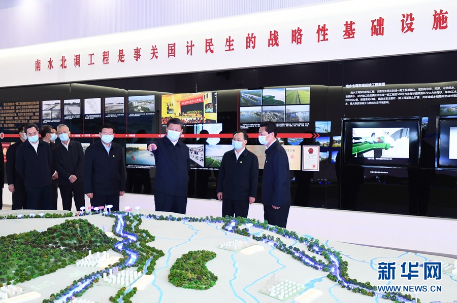 一個(gè)大型沙盤(pán)模型直觀地呈現(xiàn)了中國(guó)大地上水資源大范圍大規(guī)??鐓^(qū)域調(diào)配的壯闊景象,習(xí)近平總書(shū)記駐足凝望——