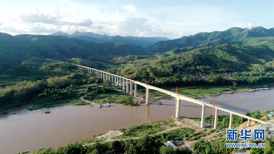 這是2020年7月15日拍攝的中老鐵路班納漢湄公河特大橋(無人機(jī)照片)。新華社發(fā)(中鐵八局供圖)