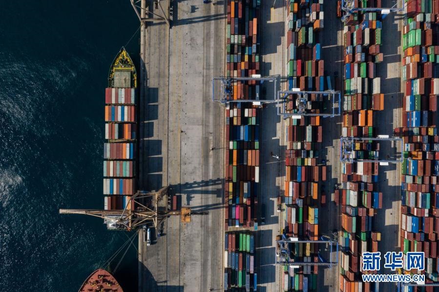 這是2019年9月6日航拍的停靠在希臘比雷埃夫斯港集裝箱碼頭的中遠(yuǎn)海運(yùn)銀河輪。新華社發(fā)(萊夫特里斯·帕察里斯攝)