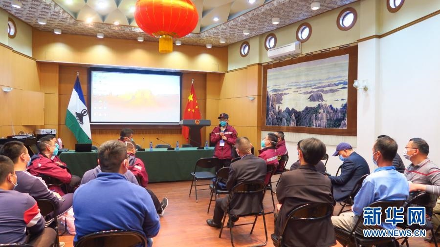 2020年10月3日,中國(guó)醫(yī)療專家組成員在萊索托馬塞盧舉辦疫情防控講座。應(yīng)萊索托政府邀請(qǐng),中國(guó)政府抗疫醫(yī)療專家組一行10人于9月27日至10月7日在萊索托開展抗擊新冠疫情援助工作。新華社發(fā)(中國(guó)駐萊索托大使館供圖)