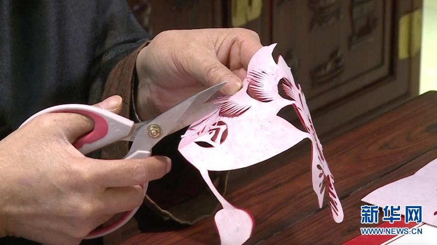 2月9日,“北京剪紙”非物質文化遺產傳承人徐陽在書桌前剪紙,喜迎新春(視頻截圖)。新華社發(fā)