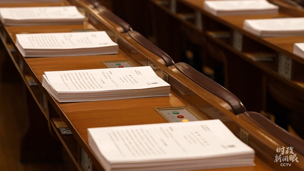 △擺放在代表座位上的政府工作報告等文件(總臺央視記者彭漢明拍攝)