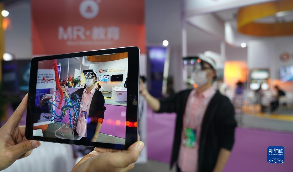 2020年10月19日,2020世界VR產(chǎn)業(yè)大會云峰會在江西省南昌市開幕,這是觀眾在大會VR/AR產(chǎn)品和應用展覽會上體驗“MR交互系統(tǒng)”在醫(yī)務教學上的應用。新華社記者胡晨歡攝