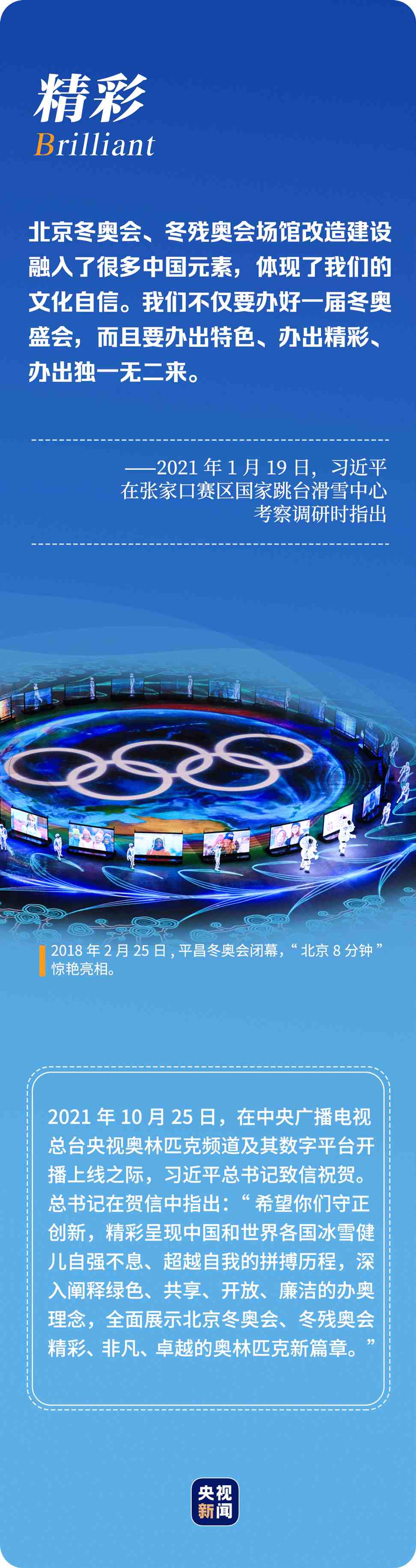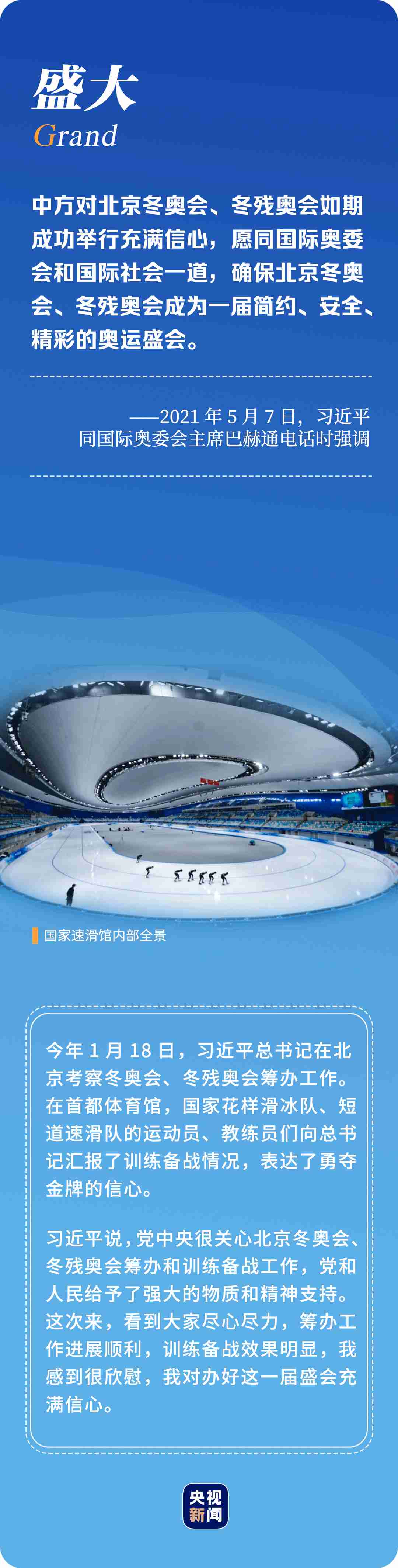 “辦好北京冬奧會、冬殘奧會是黨和國家的一件大事,是我們對國際社會的莊嚴(yán)承諾,做好北京冬奧會、冬殘奧會籌辦工作使命光榮、意義重大?!?年多來,習(xí)近平總書記始終惦記著冬奧會籌辦進(jìn)展,多次實地考察、主持召開重要會議部署推進(jìn)冬奧籌辦工作。