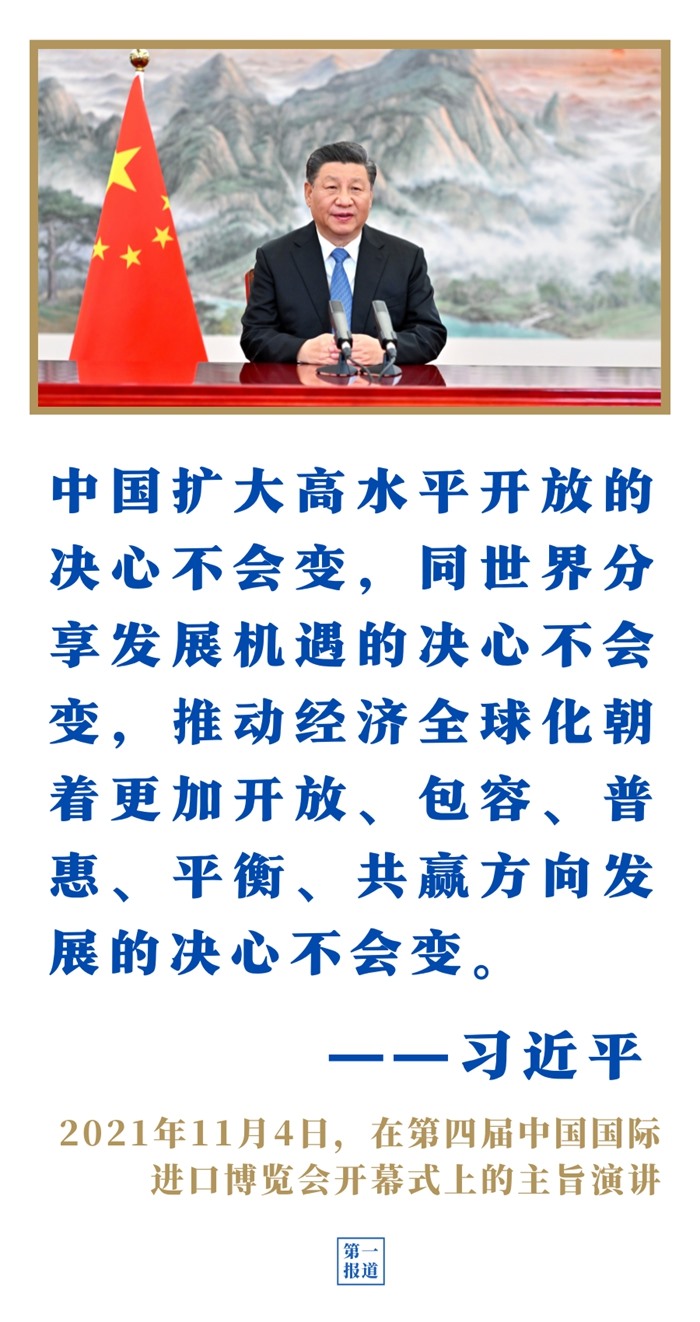 第四屆進博會上,習近平主席表示,中國愿同各國共建開放型世界經(jīng)濟,讓開放的春風溫暖世界;第三次“一帶一路”建設座談會上,習近平主席強調(diào)以高標準、可持續(xù)、惠民生為目標,繼續(xù)推動共建“一帶一路”高質(zhì)量發(fā)展。