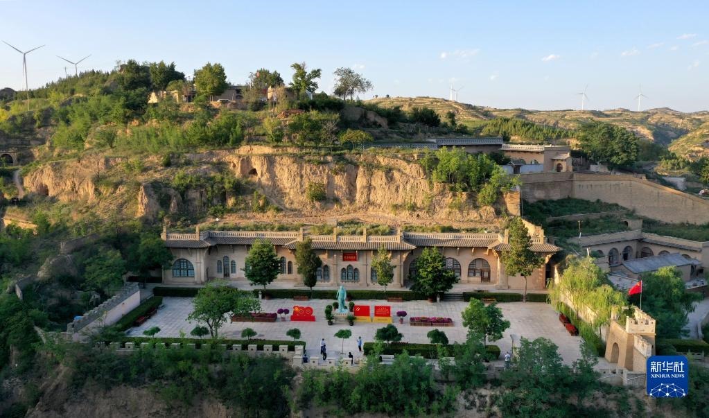 游人在陜西省榆林市米脂縣楊家溝革命舊址參觀(2021年9月10日攝,無人機(jī)照片)。新華社記者陶明攝