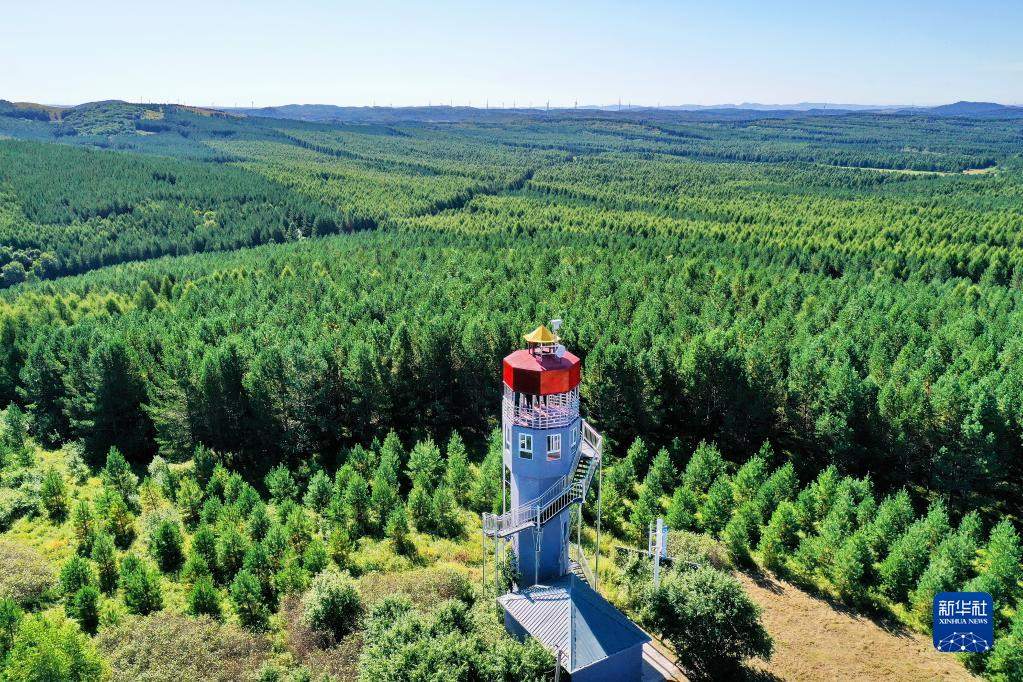 河北塞罕壩機(jī)械林場內(nèi)的望海樓(2021年8月23日攝,無人機(jī)照片)。新華社記者牟宇攝