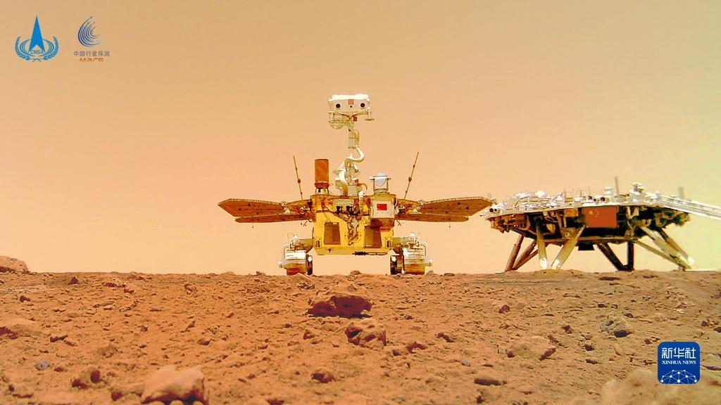 這是“著巡合影”圖。2021年6月11日,國家航天局在北京舉行天問一號探測器著陸火星首批科學(xué)影像圖揭幕儀式,公布了由祝融號火星車拍攝的著陸點(diǎn)全景、火星地形地貌、“中國印跡”和“著巡合影”等影像圖。首批科學(xué)影像圖的發(fā)布,標(biāo)志著我國首次火星探測任務(wù)取得圓滿成功。新華社發(fā)(國家航天局供圖)