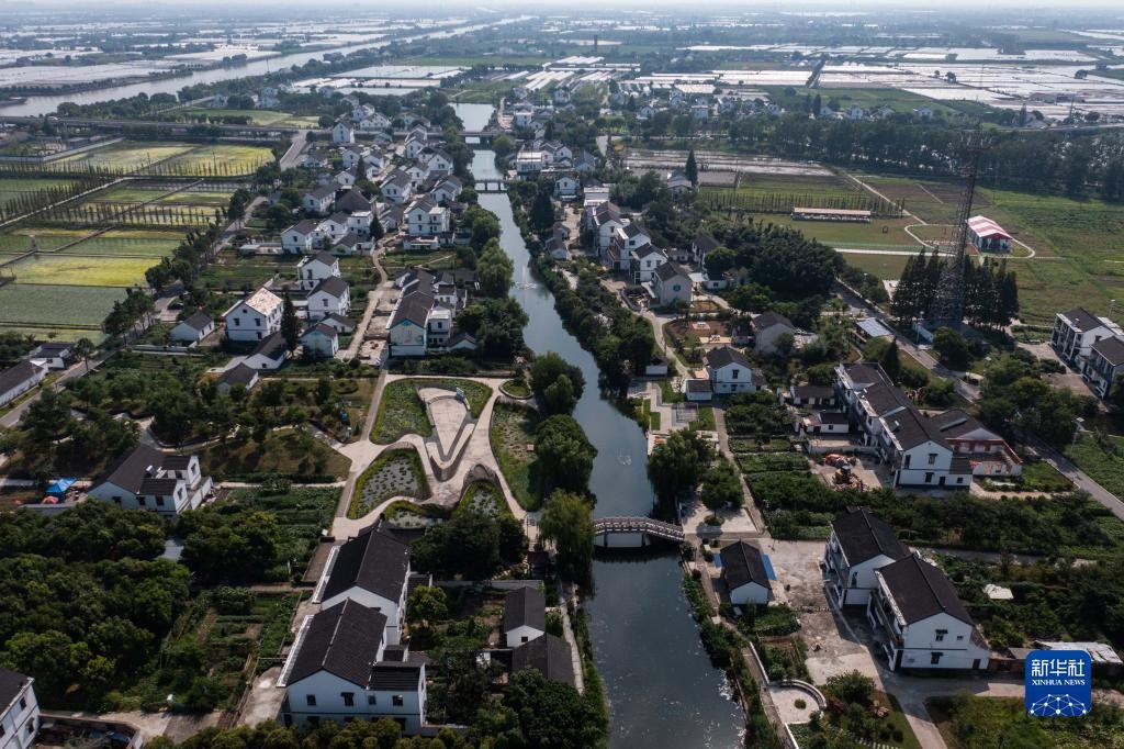 空中俯瞰浙江省嘉興市嘉善縣姚莊鎮(zhèn)橫港村(2021年7月12日攝,無人機(jī)照片)。近年來,嘉善縣建設(shè)高標(biāo)準(zhǔn)農(nóng)田14.8萬畝;同時建設(shè)產(chǎn)業(yè)幫扶聯(lián)合體、農(nóng)業(yè)社會化服務(wù)綜合體等,不斷拓寬農(nóng)民增收致富渠道,走出了一條城鄉(xiāng)深度融合推動共同富裕的實(shí)踐路子。新華社記者徐昱攝