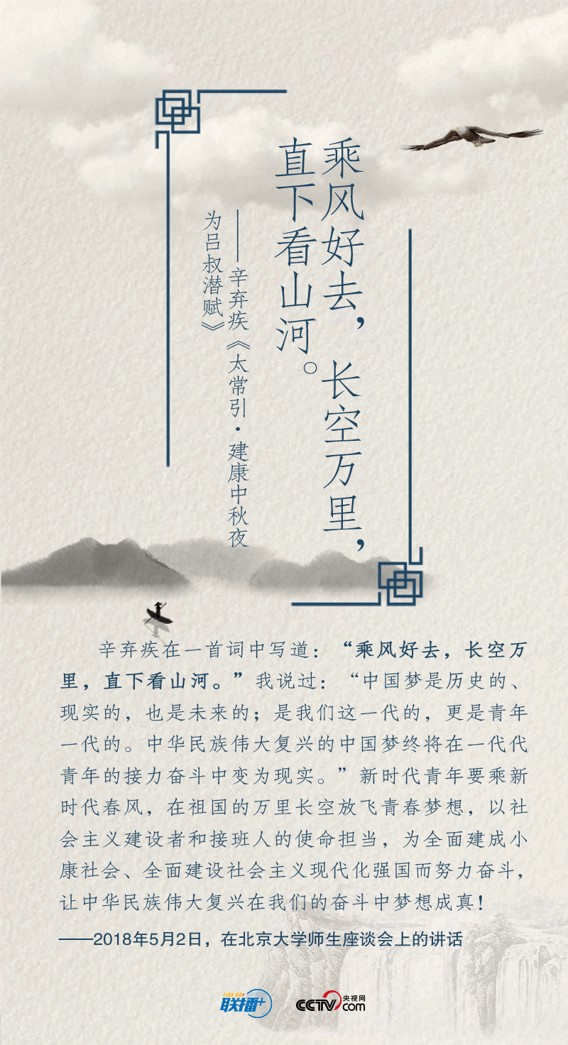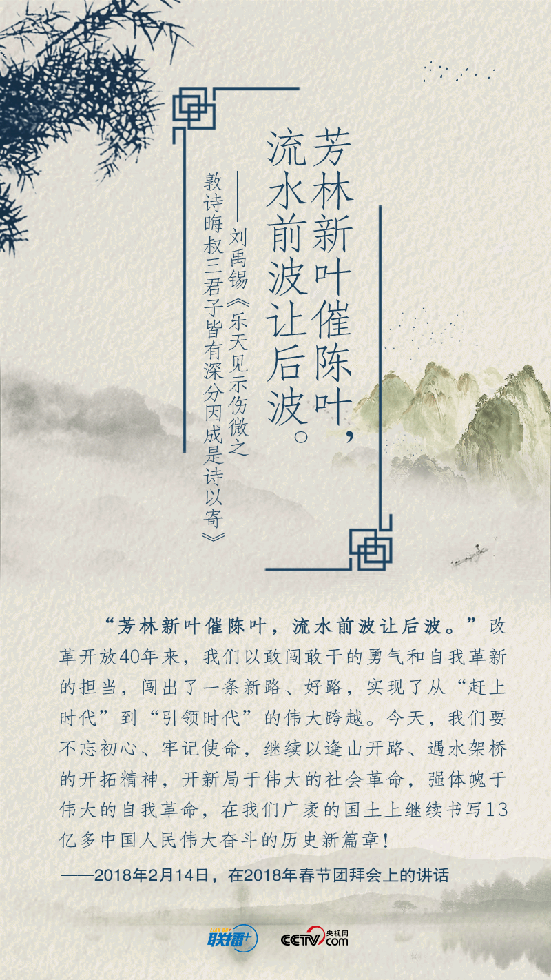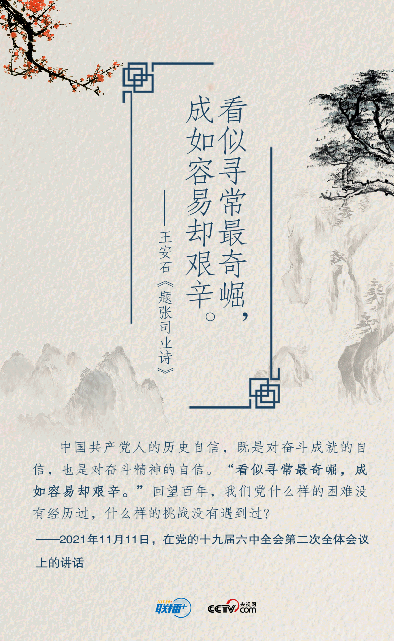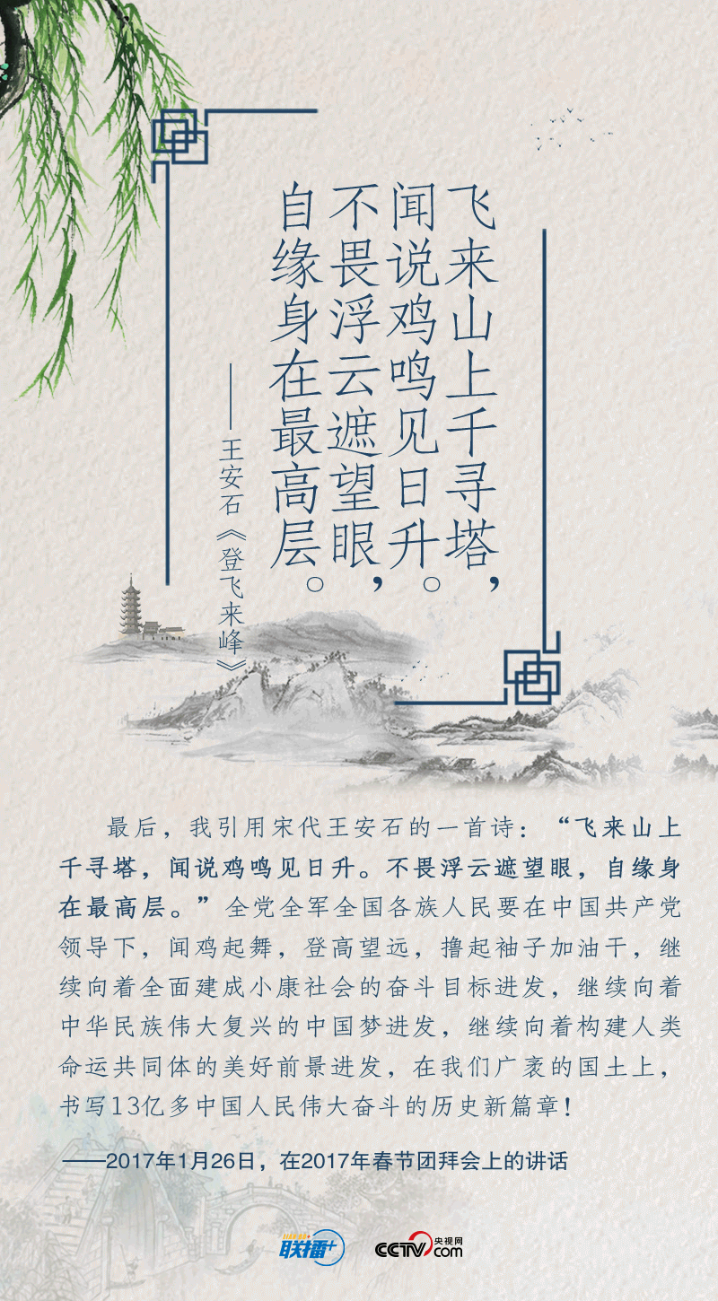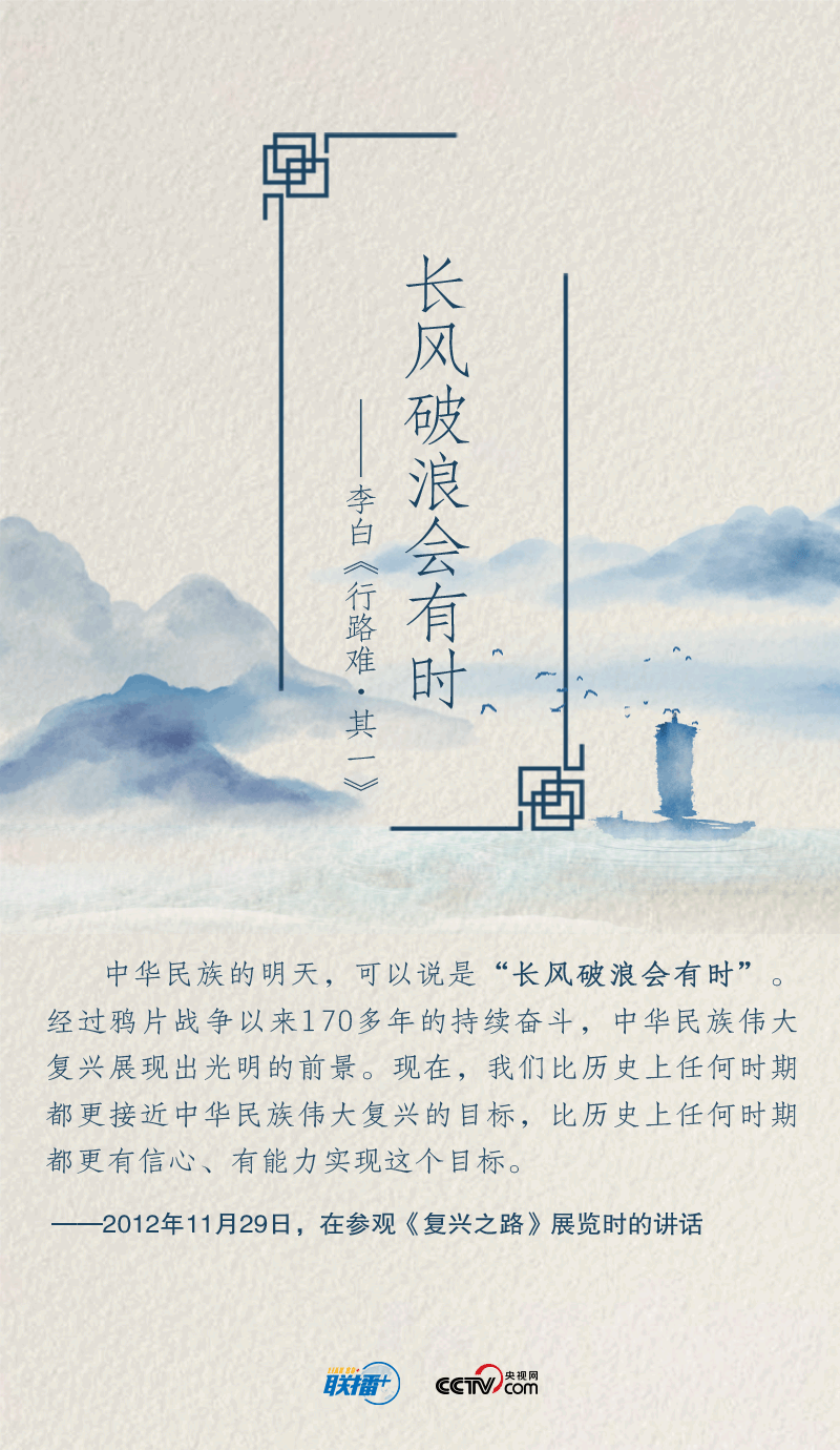 黨的十八大以來(lái),在實(shí)現(xiàn)中華民族偉大復(fù)興中國(guó)夢(mèng)的征途中,習(xí)近平總書記就“奮斗”作出一系列重要論述。以“長(zhǎng)風(fēng)破浪會(huì)有時(shí)”展望中華民族的明天,用“不畏浮云遮望眼”號(hào)召中華兒女?dāng)]起袖子加油干……總書記多次精妙運(yùn)用經(jīng)典詩(shī)詞,凝聚新時(shí)代奮斗力量。央視網(wǎng)《聯(lián)播+》特進(jìn)行梳理,與您一起領(lǐng)悟總書記的“奮斗觀”,讓我們?cè)谛抡鞒讨泄餐瑠^斗。