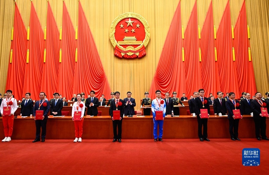 4月8日,北京冬奧會(huì)、冬殘奧會(huì)總結(jié)表彰大會(huì)在北京人民大會(huì)堂隆重舉行。習(xí)近平等為北京冬奧會(huì)、冬殘奧會(huì)突出貢獻(xiàn)個(gè)人和突出貢獻(xiàn)集體代表頒獎(jiǎng)。新華社記者 丁林 攝