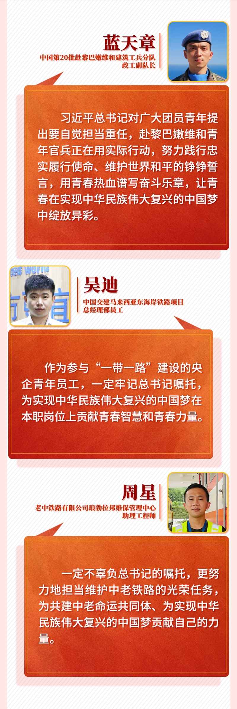 習(xí)近平總書(shū)記的重要講話令身在海外的中國(guó)青年備受鼓舞。他們一致表示,作為新時(shí)代的中國(guó)青年,一定牢記習(xí)近平總書(shū)記囑托,帶著夢(mèng)想和使命,讓青春在海外煥發(fā)異彩,在實(shí)現(xiàn)中華民族偉大復(fù)興中國(guó)夢(mèng)的新征程上奮勇前進(jìn),用青春的智慧和汗水打拼出一個(gè)更加美好的中國(guó)。