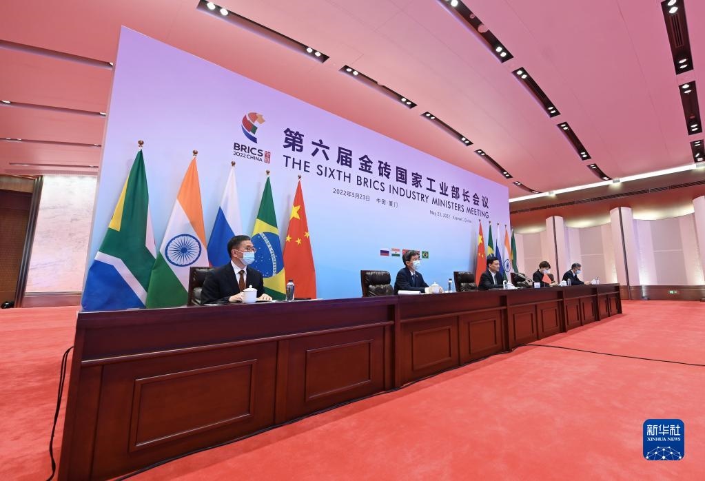2022年5月23日,第六屆金磚國家工業(yè)部長會(huì)議在福建廈門以視頻會(huì)晤的形式舉行。新華社記者林善傳攝