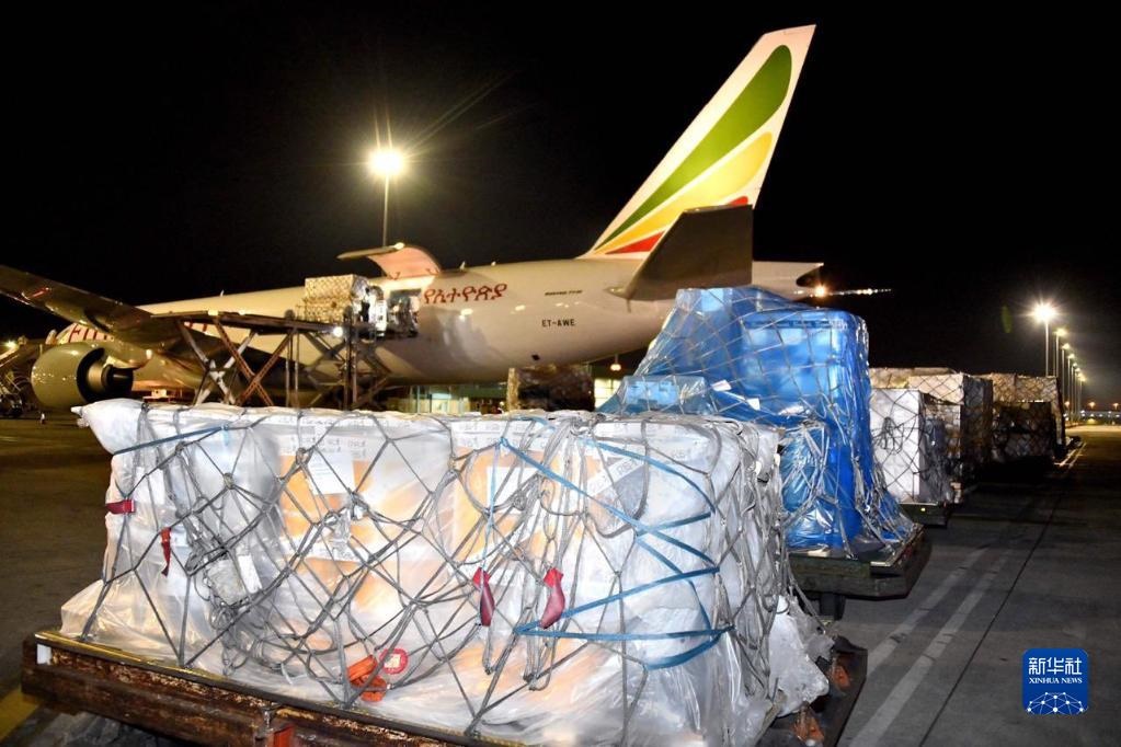 2020年4月14日,中國援助的抗疫物資抵達(dá)南非約翰內(nèi)斯堡奧坦博國際機(jī)場(chǎng)。新華社發(fā)(中國駐南非大使館供圖)