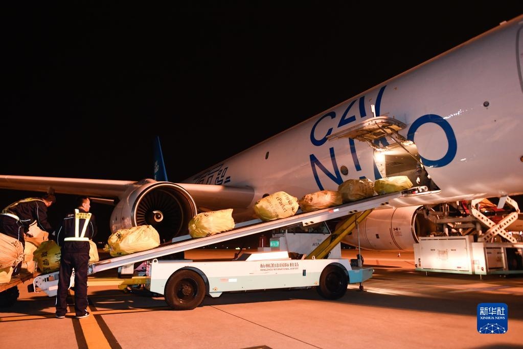 2019年10月30日凌晨,浙江杭州飛往俄羅斯首都莫斯科的首條直達(dá)電商貨運(yùn)航線“菜鳥號(hào)”從蕭山國際機(jī)場(chǎng)首航。新華社記者黃宗治攝