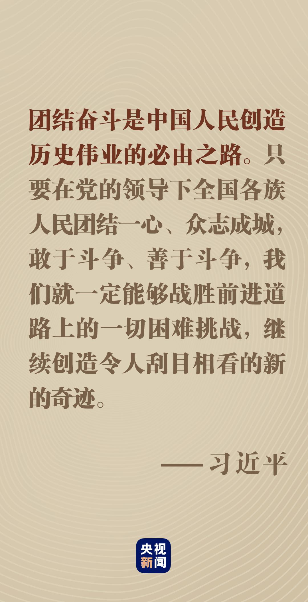 無(wú)論風(fēng)云如何變幻,無(wú)論挑戰(zhàn)如何嚴(yán)峻,只要我們精誠(chéng)團(tuán)結(jié)、共同奮斗,就沒(méi)有任何力量能夠阻擋中國(guó)人民前進(jìn)的步伐。