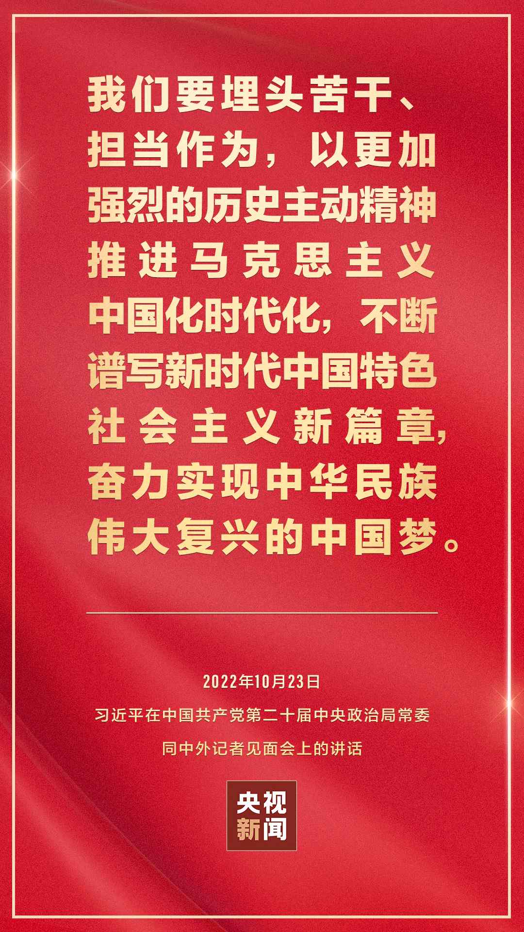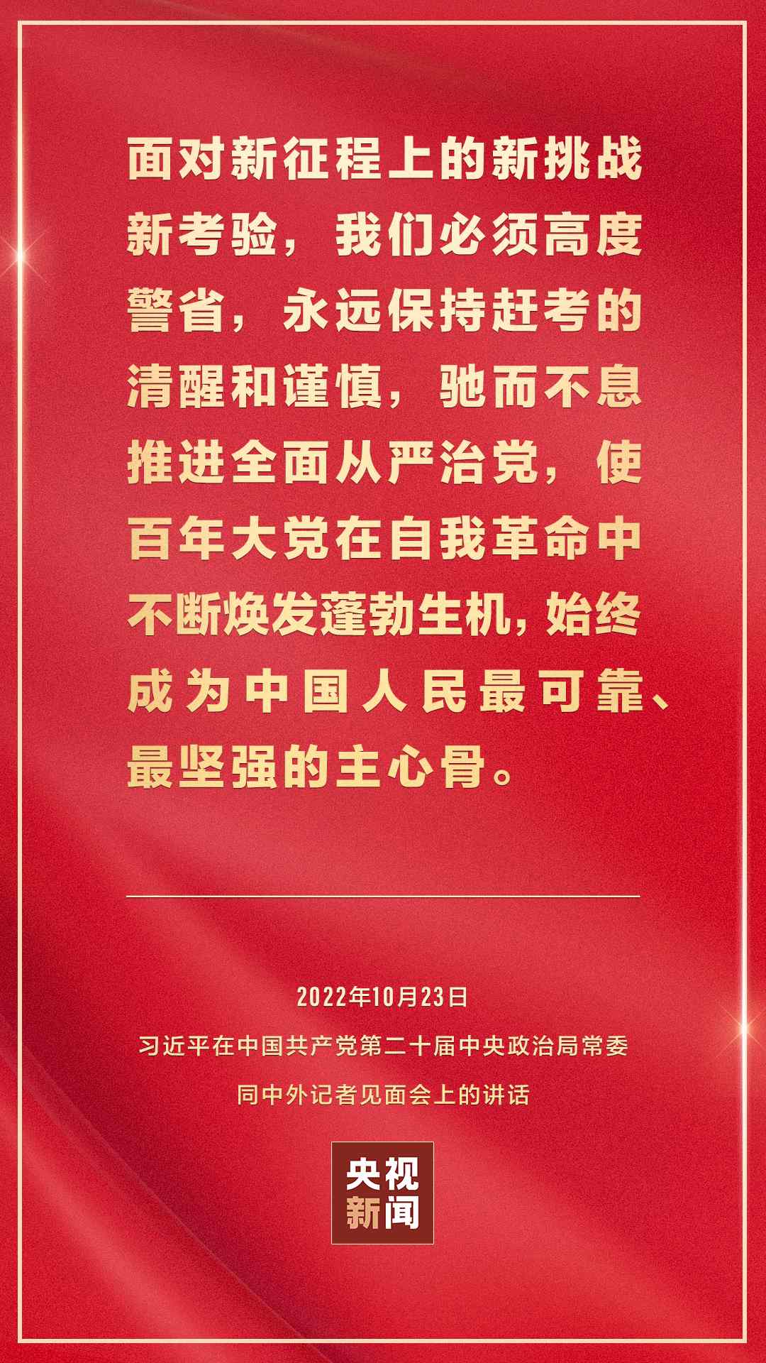 在中國共產(chǎn)黨第二十屆中央委員會第一次全體會議上當(dāng)選的中共中央總書記習(xí)近平和中共中央政治局常委李強(qiáng)、趙樂際、王滬寧、蔡奇、丁薛祥、李希,23日中午在人民大會堂同采訪中共二十大的中外記者見面。習(xí)近平發(fā)表重要講話。