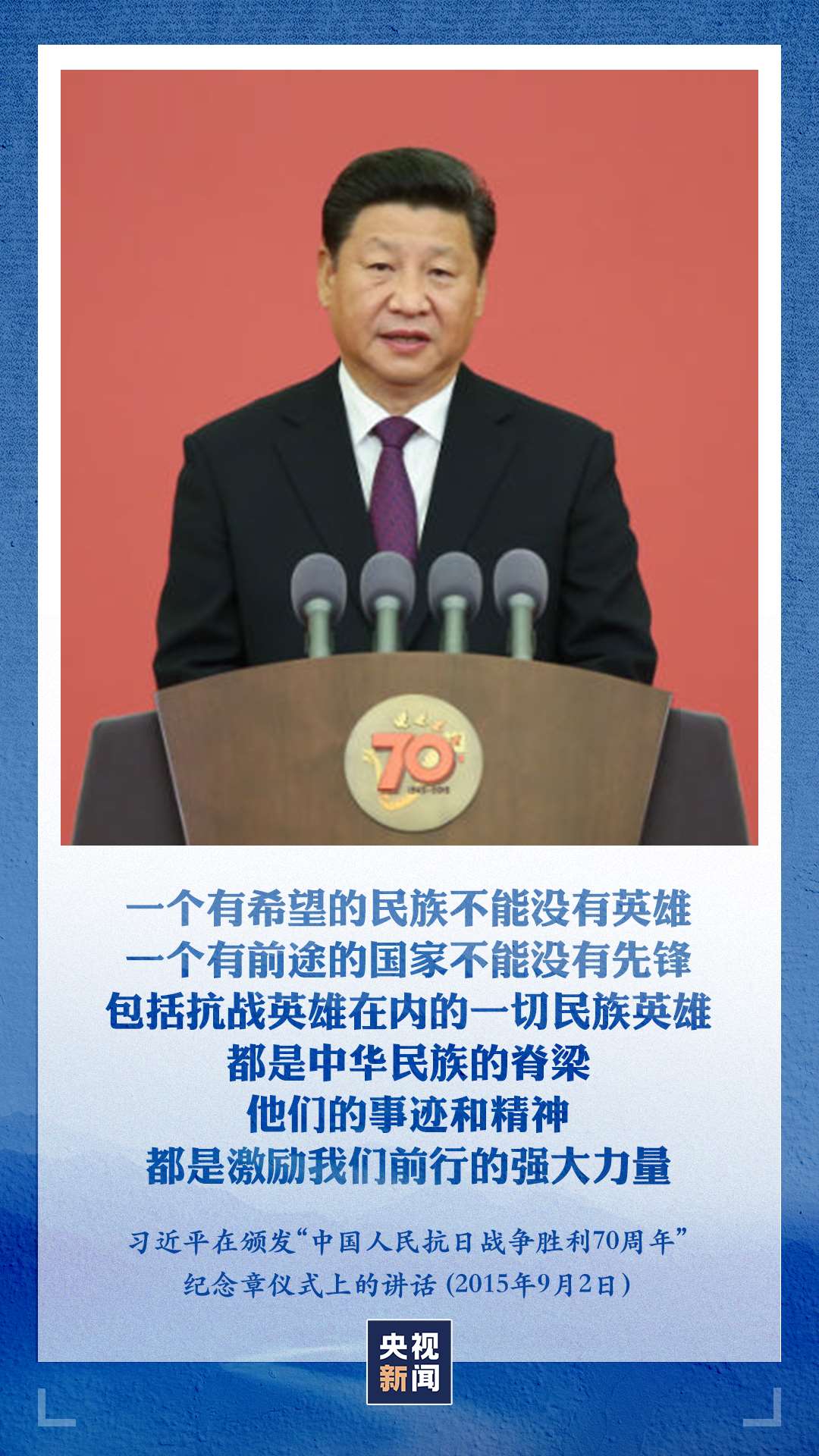 “一個有希望的民族不能沒有英雄,一個有前途的國家不能沒有先鋒?!绷?xí)近平總書記強(qiáng)調(diào),包括抗戰(zhàn)英雄在內(nèi)的一切民族英雄,都是中華民族的脊梁,他們的事跡和精神都是激勵我們前行的強(qiáng)大力量。