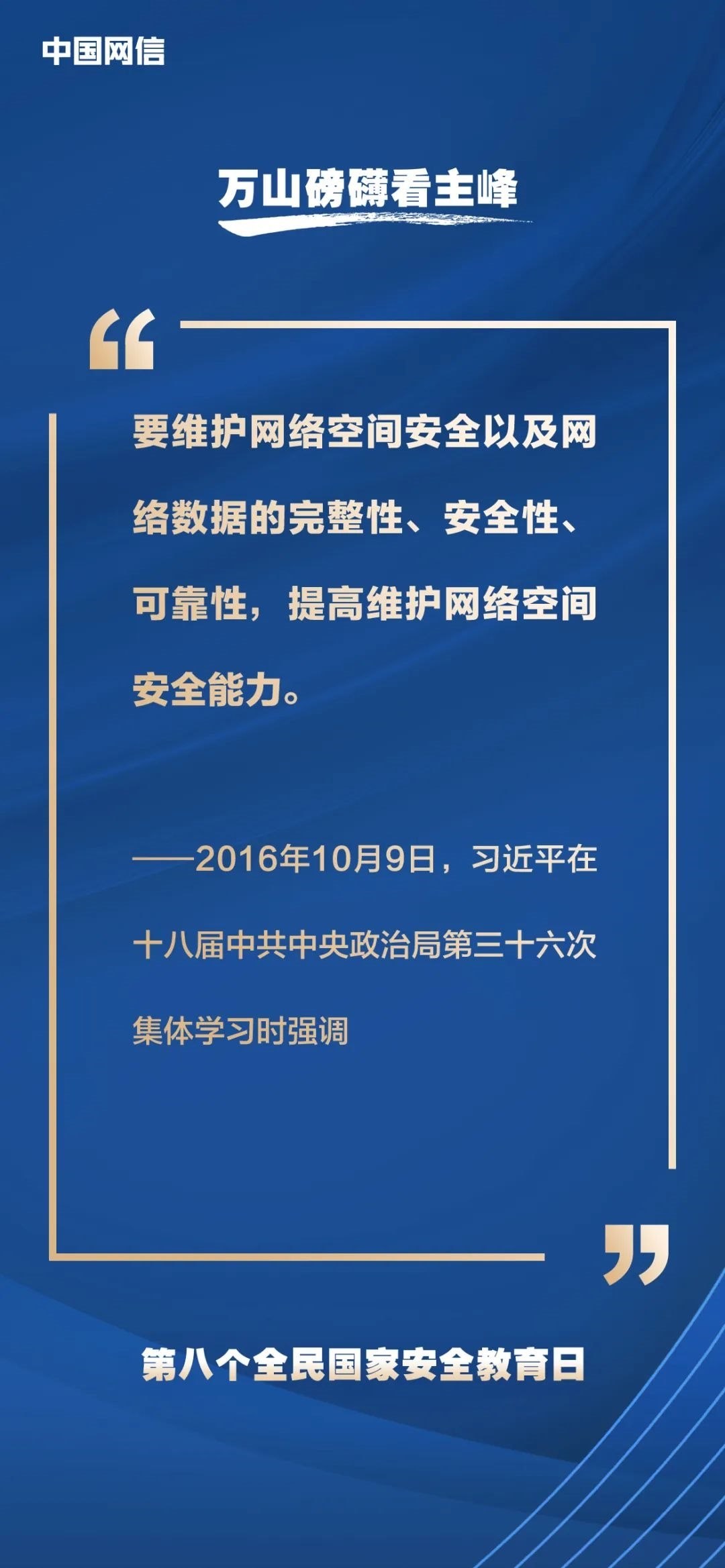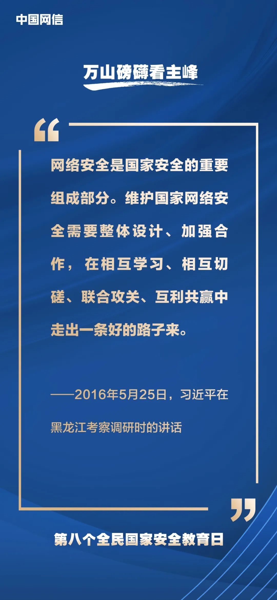 國家安全是安邦定國的重要基石,維護(hù)國家安全是全國各族人民根本利益所在。2023年4月15日是第八個(gè)全民國家安全教育日,今年的主題是“貫徹總體國家安全觀,增強(qiáng)全民國家安全意識和素養(yǎng),夯實(shí)以新安全格局保障新發(fā)展格局的社會基礎(chǔ)”。沒有網(wǎng)絡(luò)安全就沒有國家安全,以下摘取習(xí)近平總書記關(guān)于“網(wǎng)絡(luò)安全”的重要論述,與你一起回顧學(xué)習(xí)。