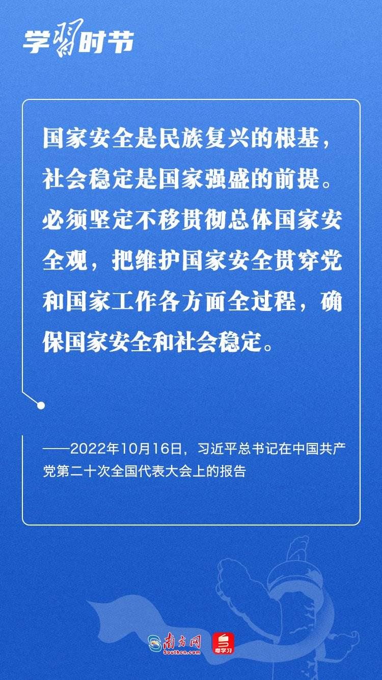 習(xí)近平總書記在黨的二十大報(bào)告中指出:“國家安全是民族復(fù)興的根基,社會(huì)穩(wěn)定是國家強(qiáng)盛的前提?!?月15日是我國第八個(gè)全民國家安全教育日。習(xí)近平總書記在2016年首個(gè)全民國家安全教育日到來之際曾強(qiáng)調(diào),實(shí)現(xiàn)中華民族偉大復(fù)興的中國夢,保證人民安居樂業(yè),國家安全是頭等大事。