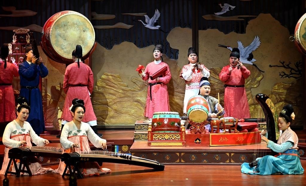 2023年1月24日,西安大唐芙蓉園內上演的舞臺劇《鼓》。新華社記者 劉瀟 攝