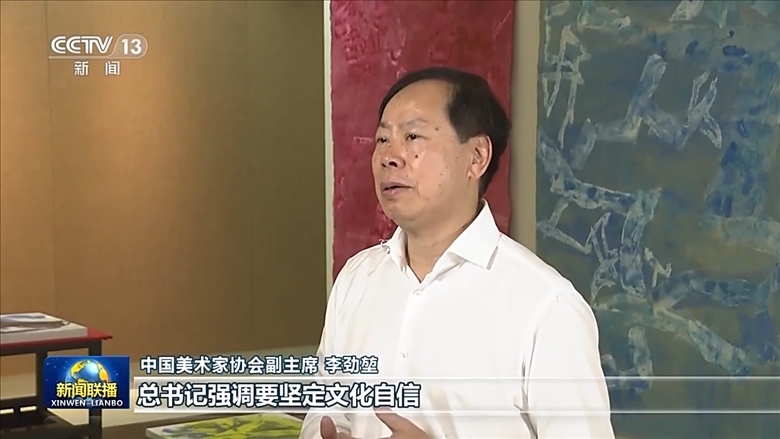 中國(guó)美術(shù)家協(xié)會(huì)副主席 李勁堃:總書記強(qiáng)調(diào)要堅(jiān)定文化自信,共同努力創(chuàng)造屬于我們這個(gè)時(shí)代的新文化。這給我們提出新的要求,指明了新的方向。作為文藝工作者,我們要堅(jiān)持把馬克思主義基本原理同中國(guó)具體實(shí)際相結(jié)合、同中華民族優(yōu)秀傳統(tǒng)文化相結(jié)合,更有效推動(dòng)中華優(yōu)秀傳統(tǒng)文化創(chuàng)造性轉(zhuǎn)化、創(chuàng)新性發(fā)展,讓傳統(tǒng)文化煥發(fā)出勃勃生機(jī)。