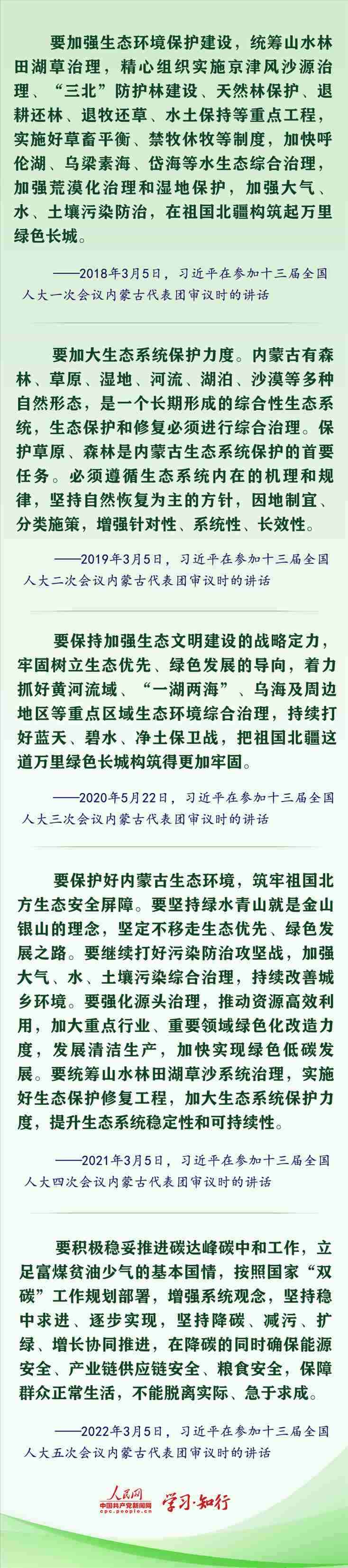 2019年3月,也是在內(nèi)蒙古代表團(tuán),總書記曾談到,內(nèi)蒙古有森林、草原、濕地、河流、湖泊、沙漠等多種自然形態(tài),是一個長期形成的綜合性生態(tài)系統(tǒng),生態(tài)保護(hù)和修復(fù)必須進(jìn)行綜合治理。