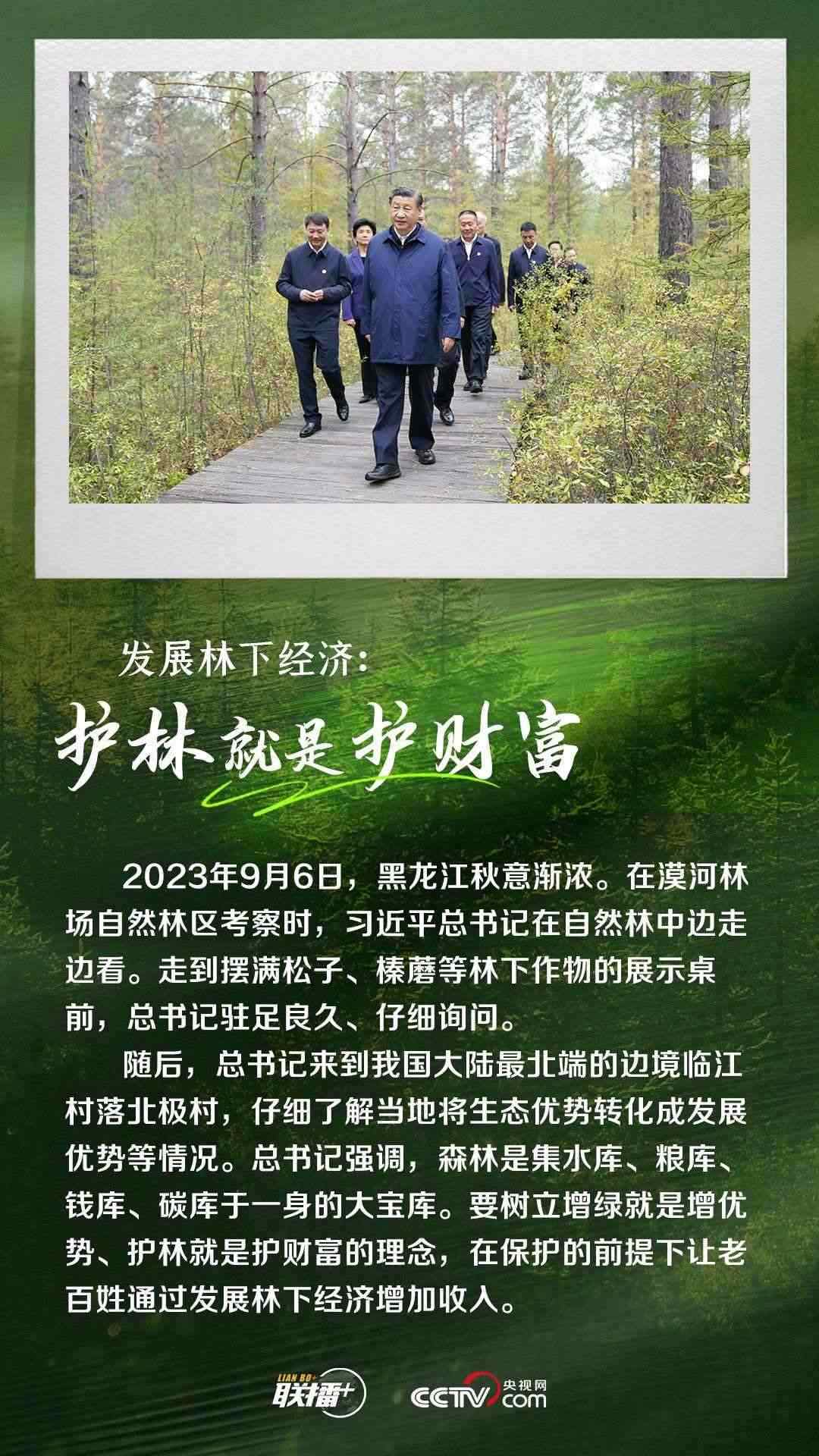 9月6日,習(xí)近平總書(shū)記來(lái)到黑龍江省大興安嶺地區(qū)漠河市考察。他深入林區(qū),走進(jìn)鄉(xiāng)村,察看自然林生長(zhǎng)態(tài)勢(shì)和林下作物展示,仔細(xì)了解當(dāng)?shù)亟Y(jié)合地域優(yōu)勢(shì)發(fā)展特色旅游、將生態(tài)優(yōu)勢(shì)轉(zhuǎn)化成發(fā)展優(yōu)勢(shì)等情況。
