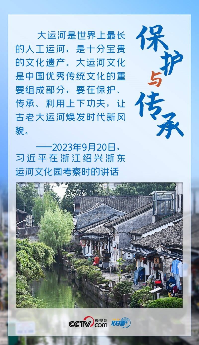 習(xí)近平總書記一直心系大運(yùn)河保護(hù)、傳承與利用工作。2017年,他對建設(shè)大運(yùn)河文化帶作出重要指示,明確指出“要統(tǒng)籌保護(hù)好、傳承好、利用好”大運(yùn)河。此次考察,總書記再次強(qiáng)調(diào)“要在保護(hù)、傳承、利用上下功夫”。保護(hù)、傳承、利用是辯證統(tǒng)一的,保護(hù)是前提,利用是過程,傳承發(fā)展是目的,三者相互依存,方能彰顯價值。文化遺產(chǎn)是先人創(chuàng)造并遺留下來的寶貴財富,是一個國家和民族文明延續(xù)的內(nèi)在脈絡(luò)與創(chuàng)新創(chuàng)造的動力源泉。在保護(hù)的基礎(chǔ)上研究利用好這些人類文明的瑰寶,才能更好做到傳承發(fā)展。