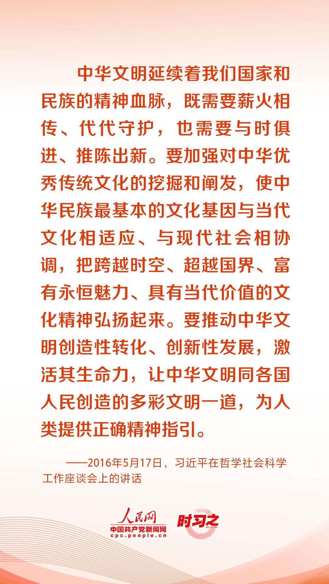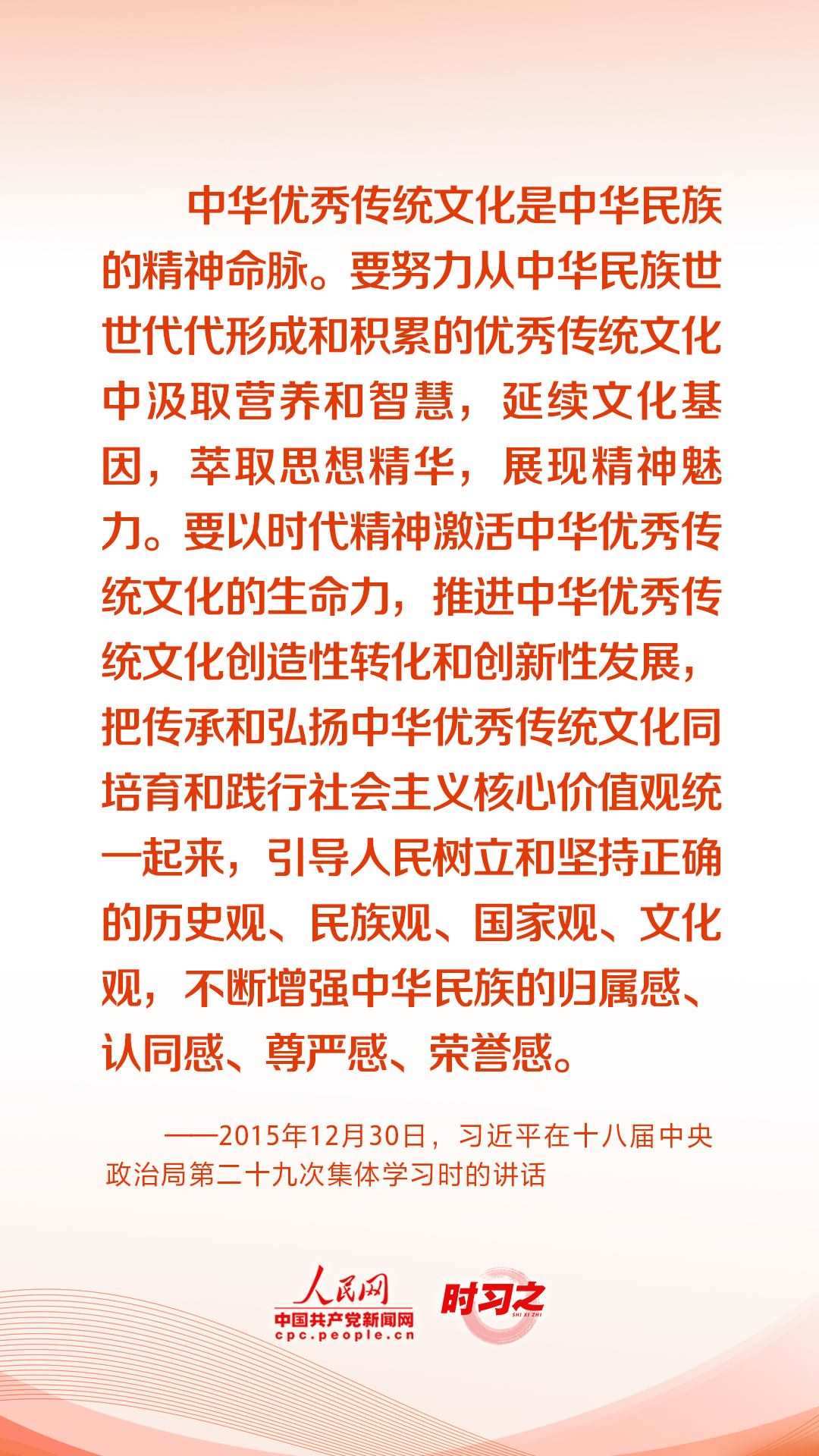 “每一種文明都延續(xù)著一個(gè)國家和民族的精神血脈,既需要薪火相傳、代代守護(hù),更需要與時(shí)俱進(jìn)、勇于創(chuàng)新?!秉h的十八大以來,習(xí)近平總書記深刻把握新時(shí)代歷史方位,以堅(jiān)定的文化自覺、宏闊的歷史視野、深遠(yuǎn)的戰(zhàn)略考量,就文化建設(shè)提出了一系列新理念新思想新戰(zhàn)略,引領(lǐng)中華文化創(chuàng)造性轉(zhuǎn)化、創(chuàng)新性發(fā)展,推動中華文脈綿延繁盛、中華文明歷久彌新。