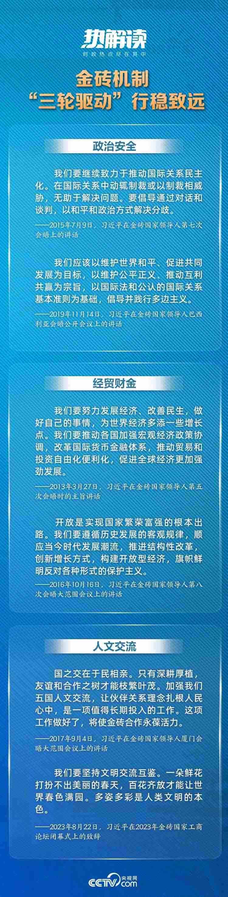 多年來,習主席一次次為完善金磚國家“三輪驅動”合作架構架梁立柱,為解決全球性挑戰(zhàn)提供中國方案,為推動全球公平公正發(fā)展貢獻中國智慧,在金磚發(fā)展之路上留下濃墨重彩的中國印記。