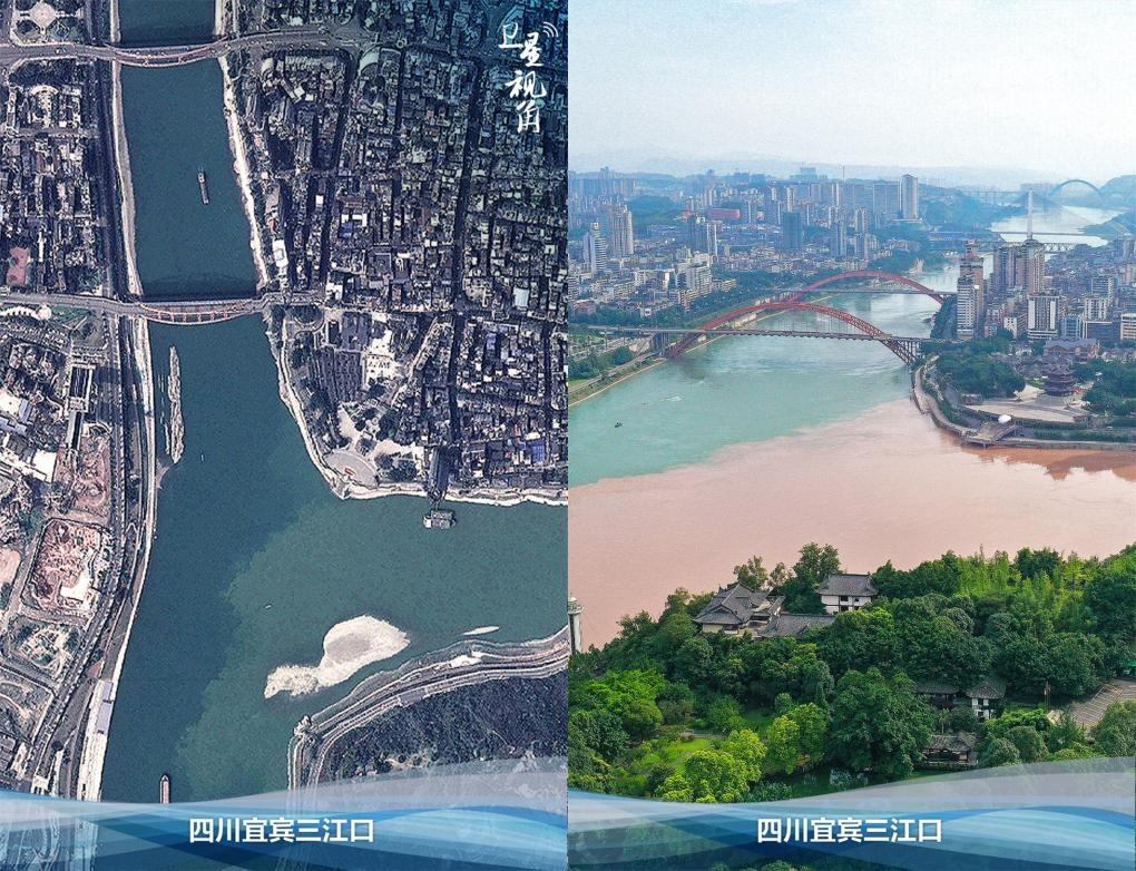 長江、金沙江、岷江在宜賓市主城區(qū)交匯,形成了三江匯流的壯闊景象。習(xí)近平來到三江口,眺望三江交匯處,聽取當(dāng)?shù)赝七M長江流域生態(tài)修復(fù)保護、實施長江水域禁捕退捕等情況介紹。