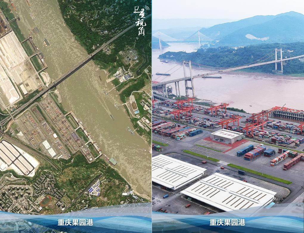 重慶果園港是長江上游第一大港口。習(xí)近平來到重慶果園港碼頭前沿平臺,考察長江航運和港口裝卸作業(yè)。