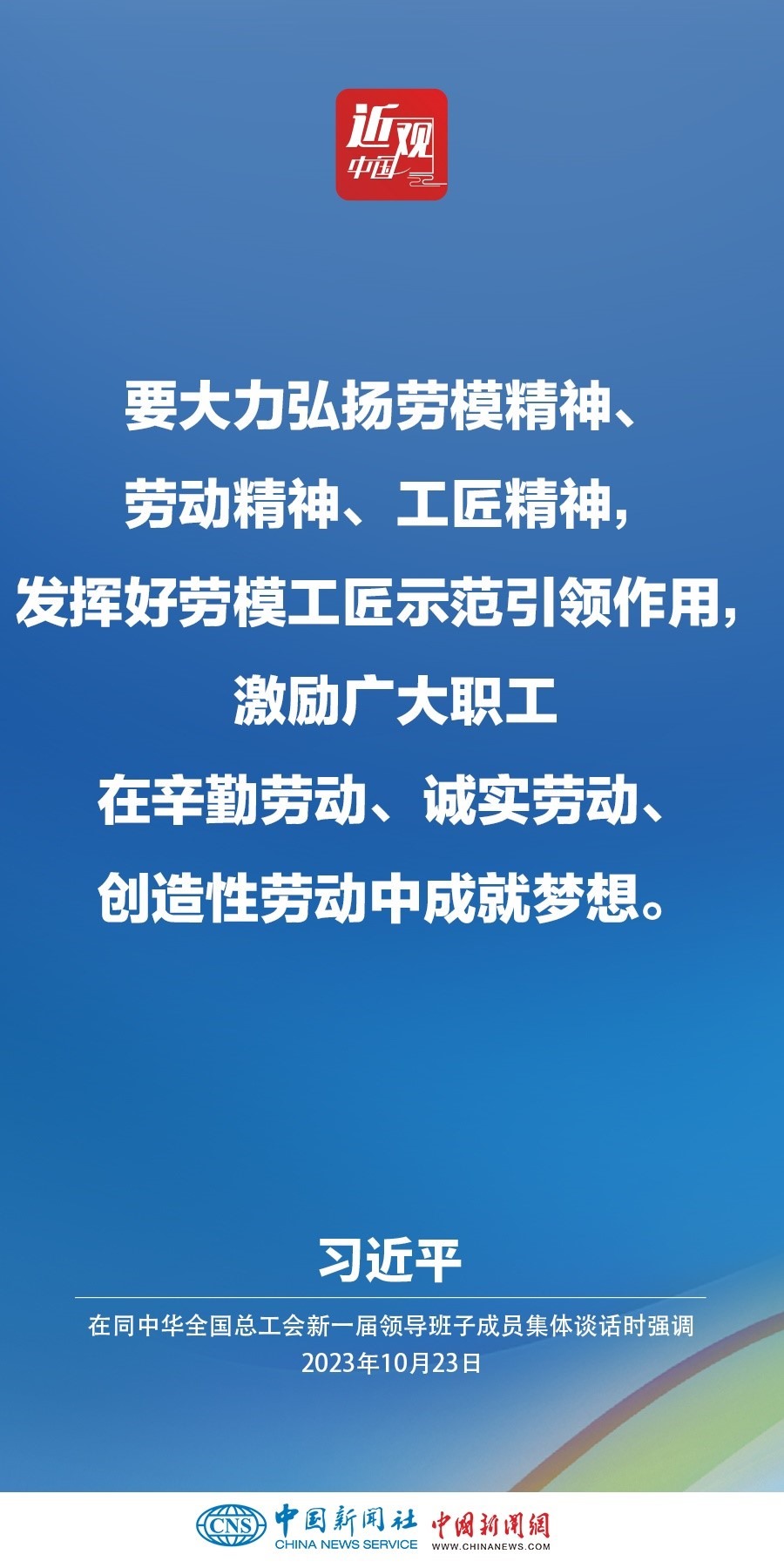 中共中央總書記、國家主席、中央軍委主席習(xí)近平23日下午在中南海同中華全國總工會新一屆領(lǐng)導(dǎo)班子成員集體談話并發(fā)表重要講話。他強(qiáng)調(diào)——