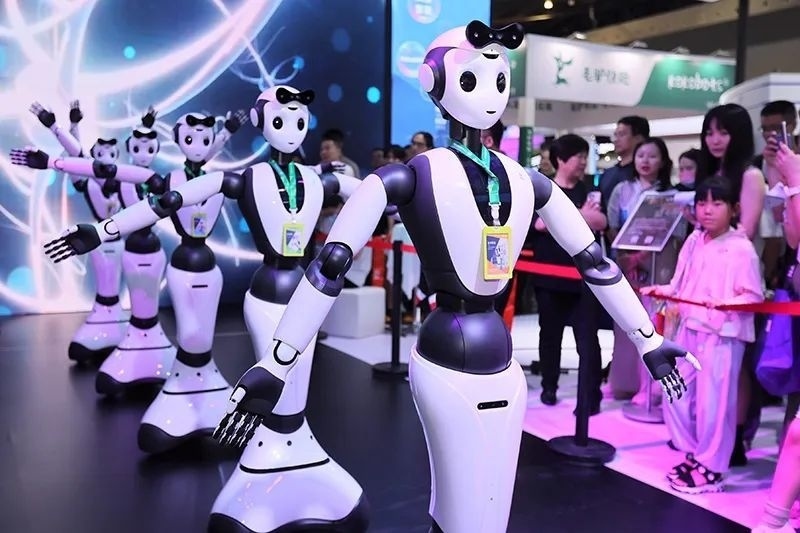 △2023年7月6日,2023世界人工智能大會上,人形機(jī)器人進(jìn)行“千手觀音”表演。