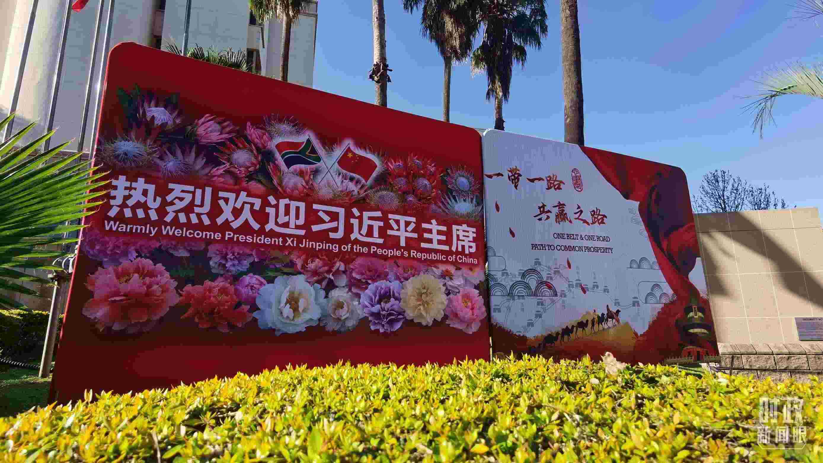 △ 2023年8月,習近平主席抵達南非約翰內斯堡,出席金磚國家領導人第十五次會晤并對南非進行國事訪問。圖為約翰內斯堡街道邊“熱烈歡迎習近平主席”的標語牌。(總臺央視記者曹亞星拍攝)