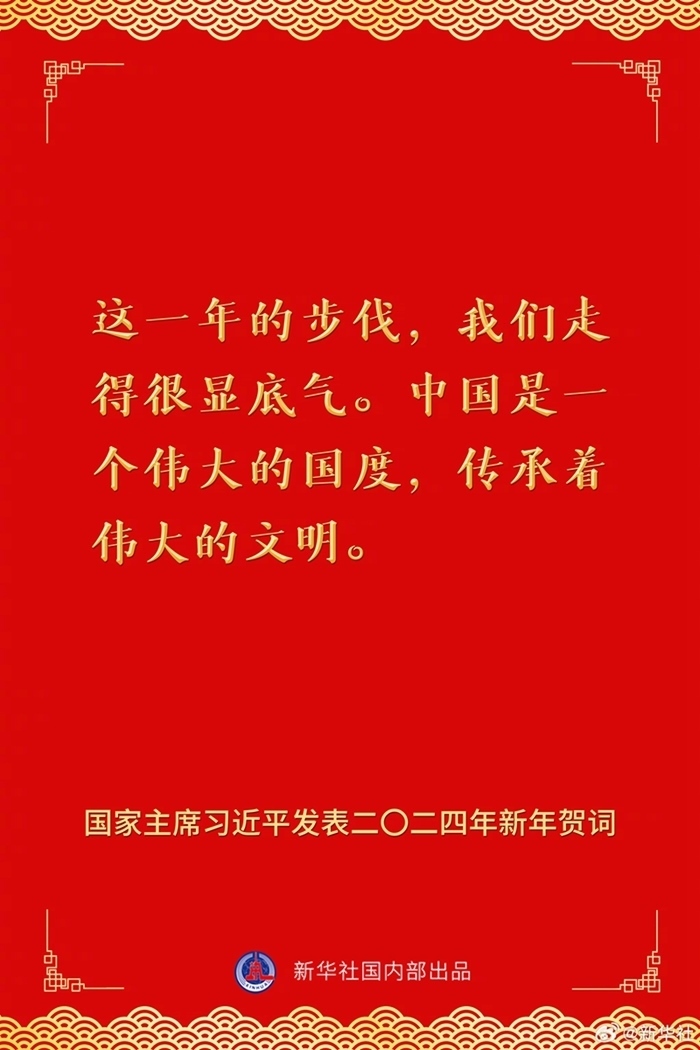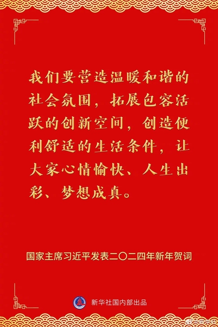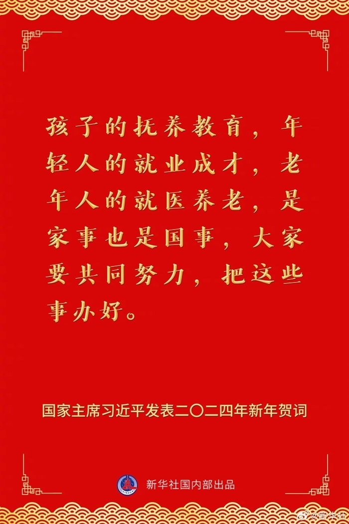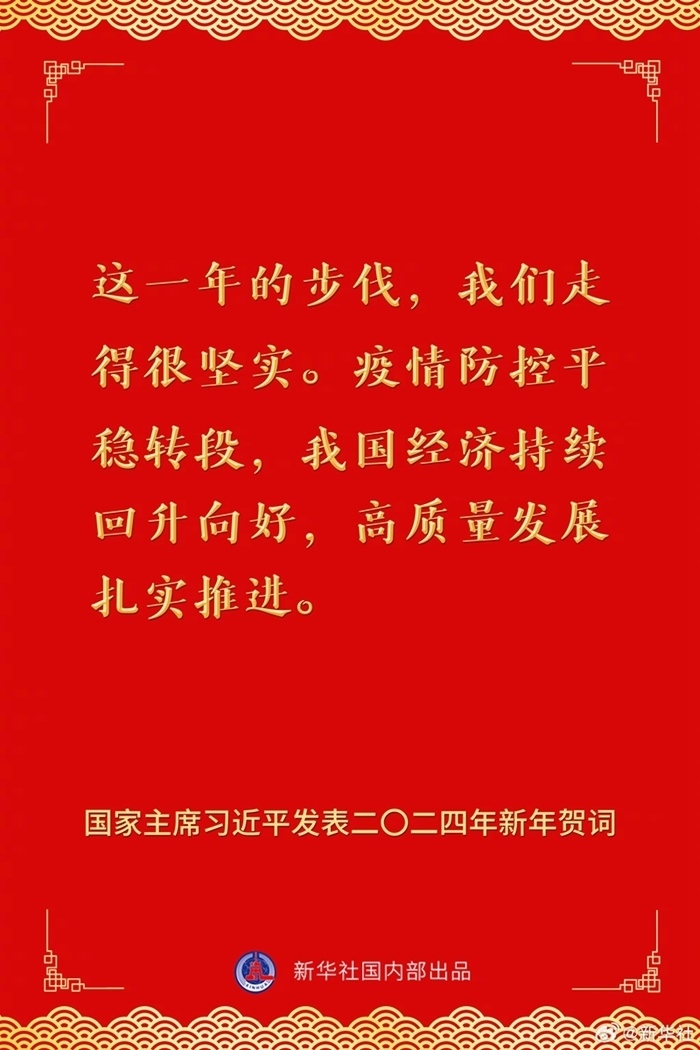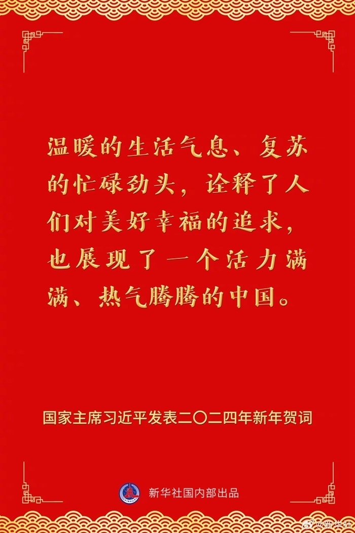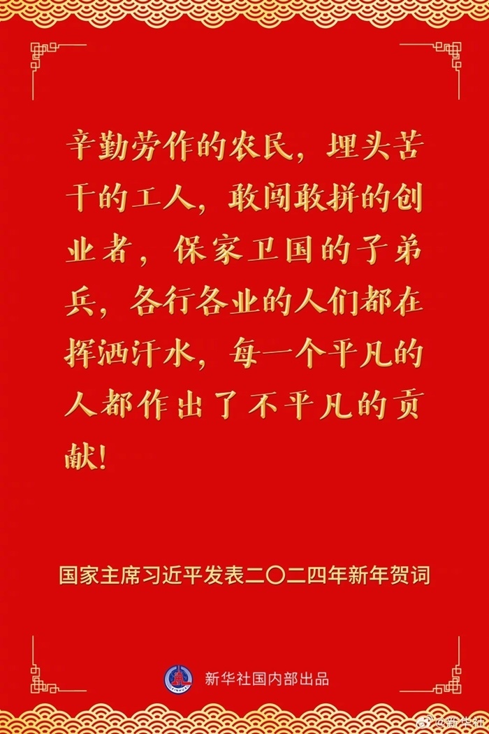國家主席習(xí)近平發(fā)表二〇二四年新年賀詞,一起來看金句。