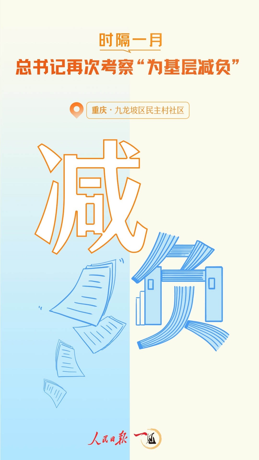 1個(gè)月前,湘北的港中坪村,總書(shū)記囑托“持之以恒抓好這項(xiàng)工作”。4月22日,山城重慶,九龍坡區(qū)民主村社區(qū),總書(shū)記再次強(qiáng)調(diào):“為基層減負(fù)要明確權(quán)責(zé),不能什么事都?jí)航o基層,基層該承擔(dān)哪些工作,要把職責(zé)事項(xiàng)搞清楚。”