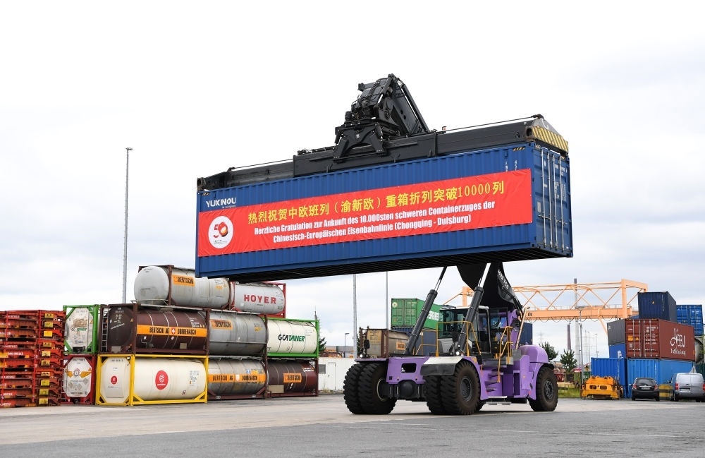 2022年7月11日,中歐班列(重慶)第10000列重箱折列抵達德國杜伊斯堡,這是接車儀式現場。