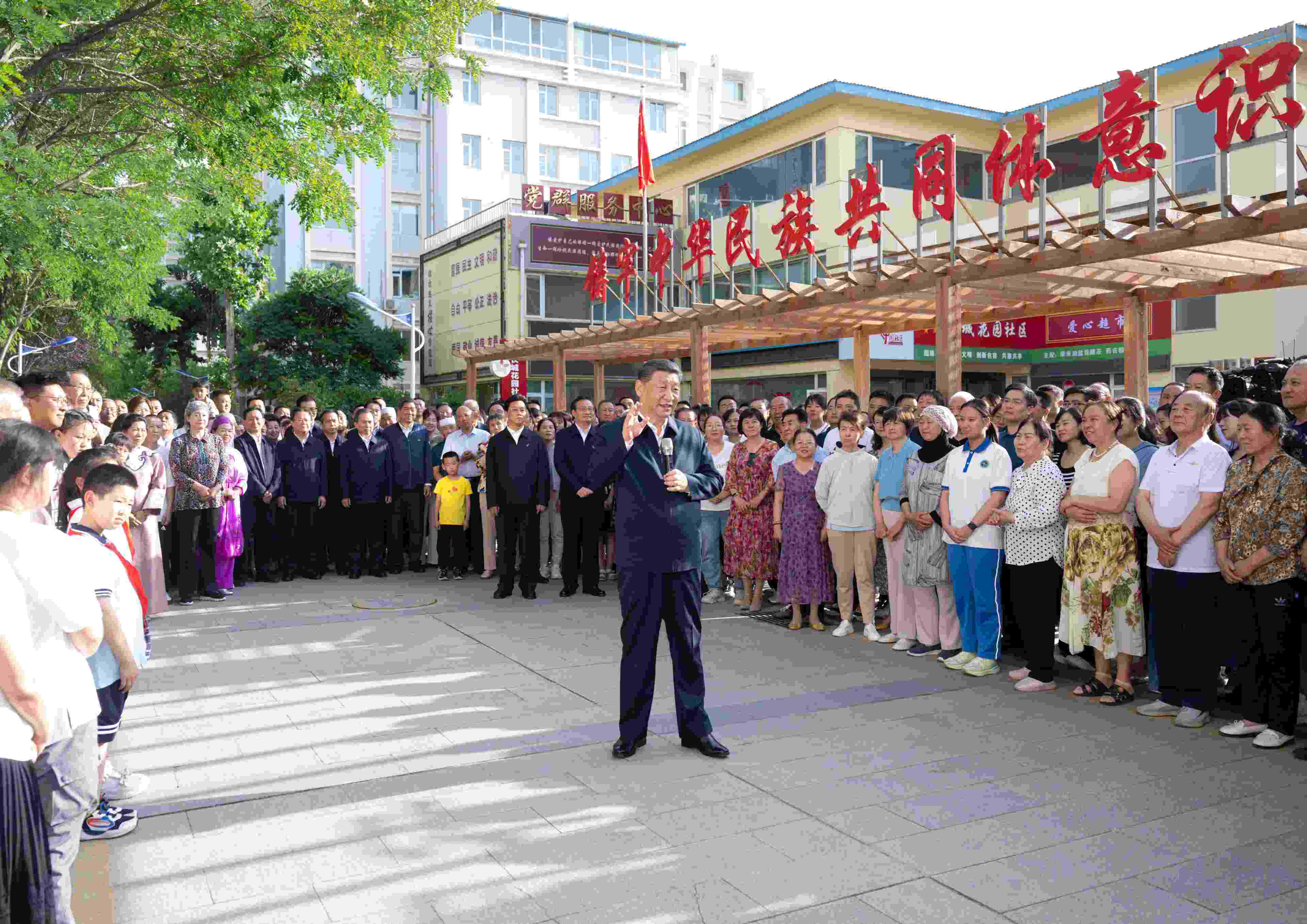 19 日下午,習(xí)近平總書記在寧夏回族自治區(qū)考察調(diào)研。他來到銀川市金鳳區(qū)長城花園社區(qū),了解社區(qū)發(fā)揮基層黨組織作用、優(yōu)化便民惠民服務(wù)、推動各族群眾交往交流交融等情況。(杜尚澤)