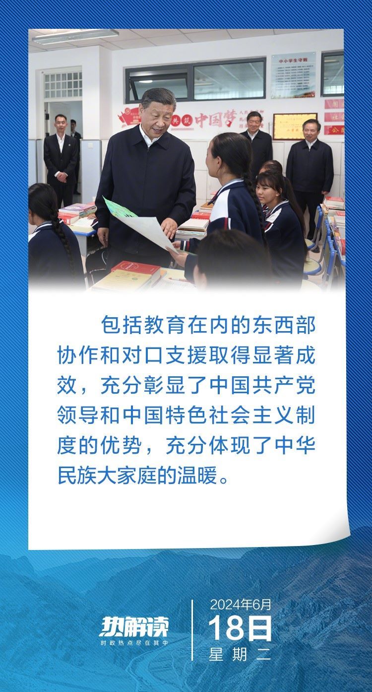 6月18日下午,在青海省考察的習(xí)近平總書記,首站來到這所中學(xué)看望老師和同學(xué)們。他先后走進食堂、宿舍、教室,關(guān)心學(xué)生們的飲食、住宿、學(xué)習(xí)……了解當(dāng)?shù)厣钊胪七M教育工作東西部協(xié)作和對口支援等情況。